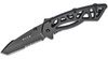 - Blade: 3" (7.6 cm) modified tanto, partially serrated, 420HC stainless steel