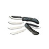 The knife features a one-piece Grivory handle, engineered with rubberized TPR inserts to ensure a secure, comfortable grip. It also boasts a replaceable pocket clip for easy and safe portability. The package includes four razor-sharp blades that can be easily replaced, ensuring that your knife is always ready for action.